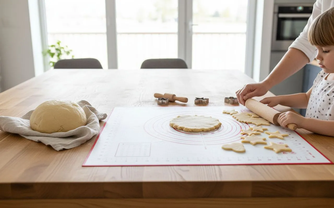 Très pratique pour faire des biscuits avec les enfants. Ça limite le désordre et chacun a son espace. Se nettoie d’un coup d’éponge.